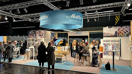 2024 ging es auf dem Mettler Stand der h+h Cologne vom 22.-24. März interaktiv und bunt zu - Leitthema war dieses Jahr das Thema Quilten. Mettler präsentierte eine Vielzahl an neuen Farben für Quilt-Enthusiasten in allen Baumwollartikeln der Stärken 40 und 50 und trumpfte gleichzeitig mit einer ansprechenden neuen 1.000m Kreuzwickel-Aufmachung des Silk-Finish Cotton 40 Artikels. Besucher der Messe konnten sich an einer von Bernina gestellten Longarm-Quiltmaschine beim Freemotion Quilting direkt selbst ein Bild der hervorragenden Qualität der Quiltgarne machen und sich mit ihrem ganz eigenen Muster im Messe-Quilt verewigen.